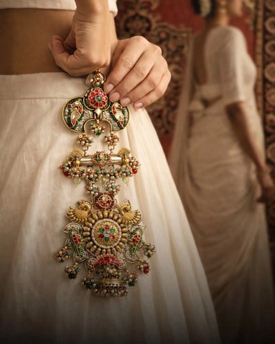 P925 Silver Swarna Peacock Temple Haar