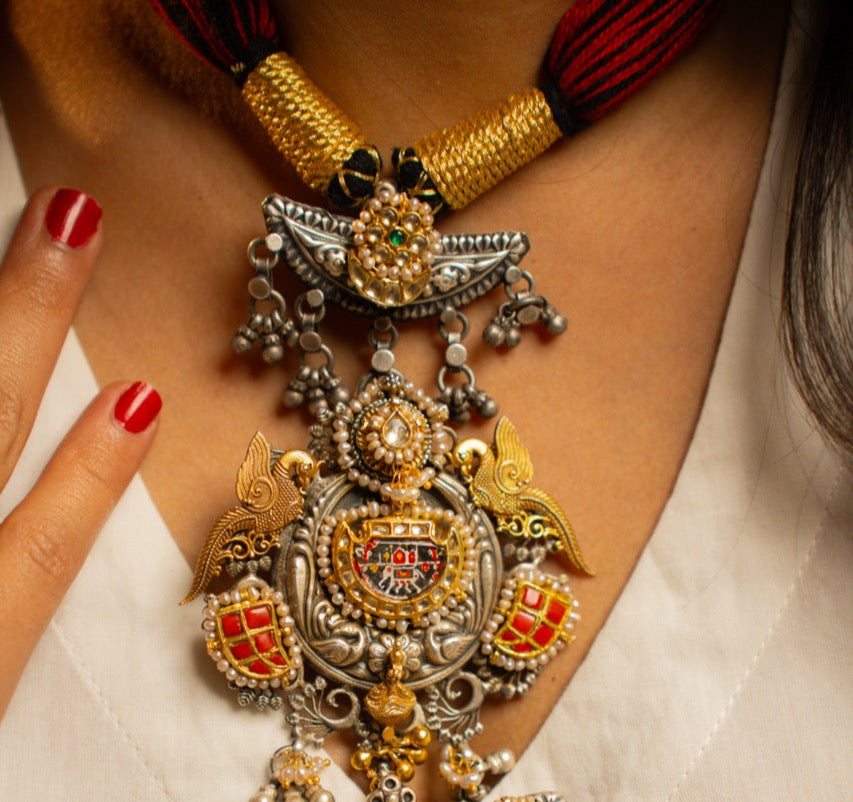 p925 Silver Tribal Mangalya Heritage Necklace
