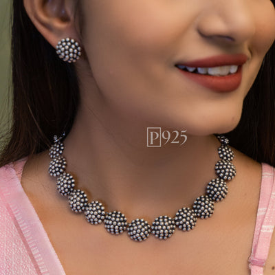P92.5 Silver Monzonite Bloom Temple Choker Necklace